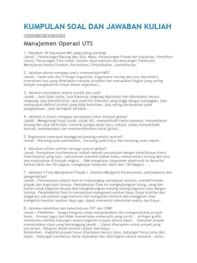 Doc Contoh Soal Dan Jawaban Analisis Kuantitatif Bisnis Keti