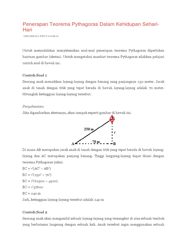 Contoh Soal Teorema Phytagoras Dalam Kehidupan Sehari Hari