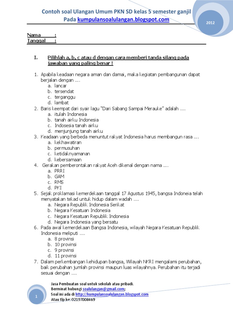Soal Uas Ganjil Pkn Sd Kelas 5