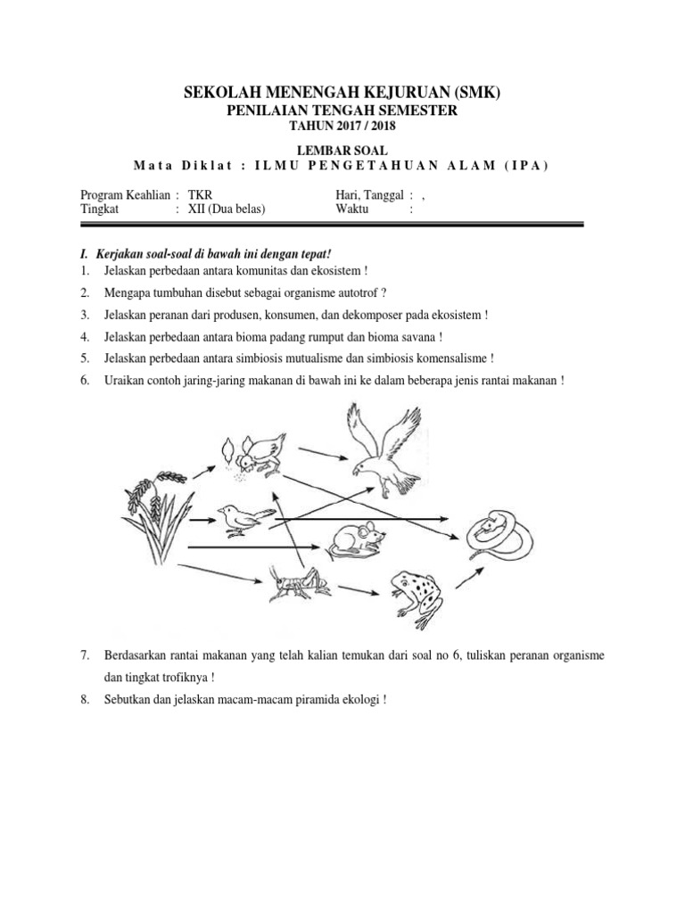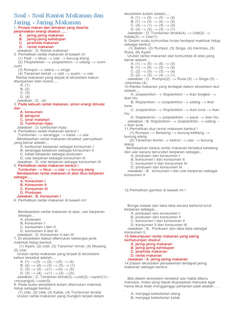 Contoh Soal Jaring Jaring Makanan Belajar Sastra Dan Seni