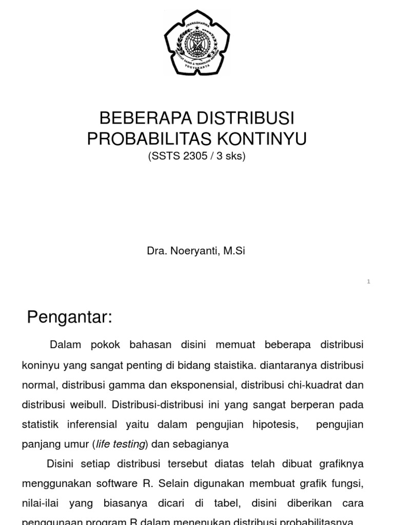 Pdf Beberapa Distribusi Peluang Kontinu Kontinu Immanuel Wanda