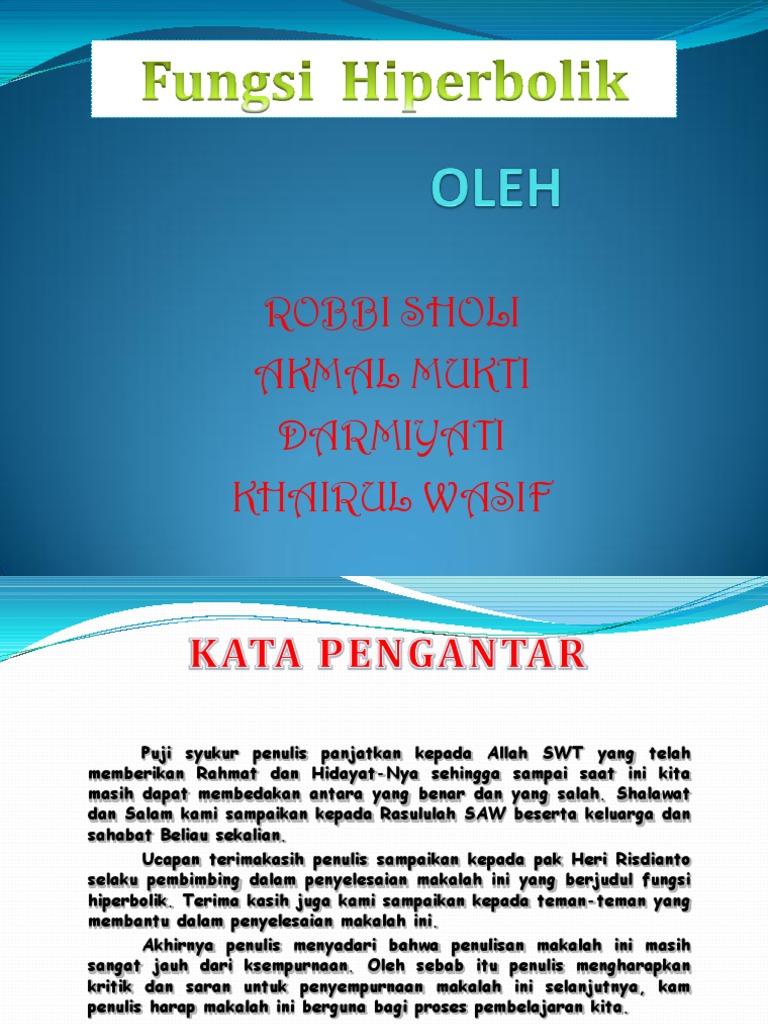 Fungsi Hiperbolik Dan Turunannya Inayah Mathematics Education