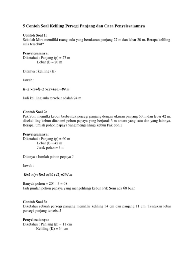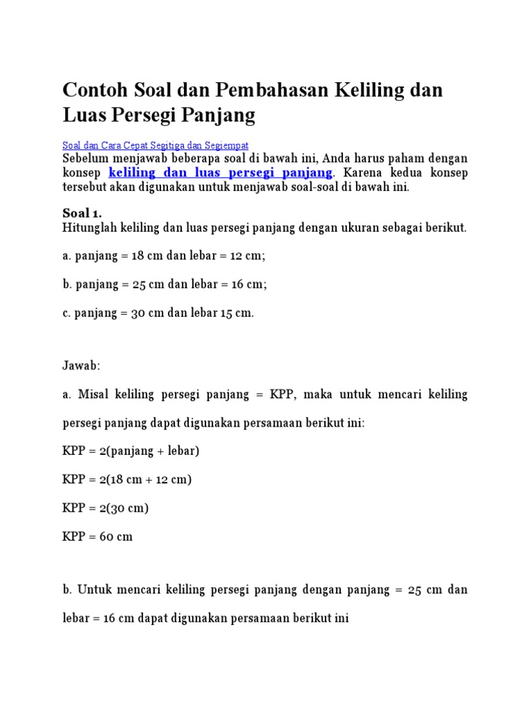 Contoh Soal Dan Pembahasan Keliling Dan Luas Persegi Panjang Docx