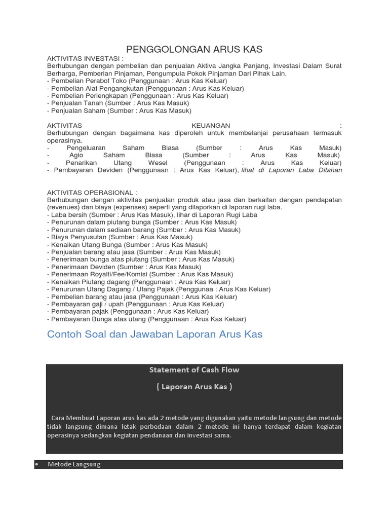 Laporan Arus Kas Metode Langsung Dan Metode Tidak Langsung
