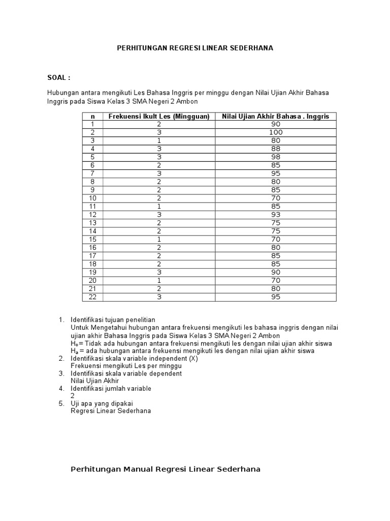Contoh Soal Regresi Linear Docx Regresi Linear Sederhana Hubungan