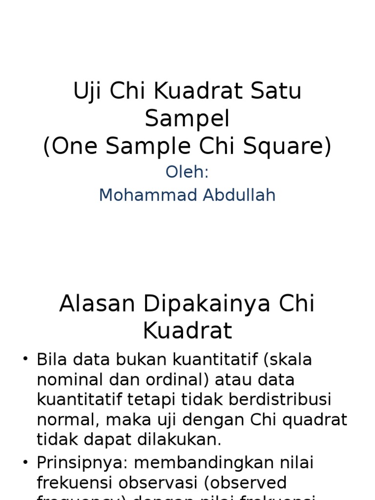 Chi kuadrat x 2 satu sampel. Uji kai kuadrat chi square test. Chi square adalah salah satu jenis uji komparatif non parametris yang dilakukan pada dua variabel di mana skala data kedua variabel adalah nominal.