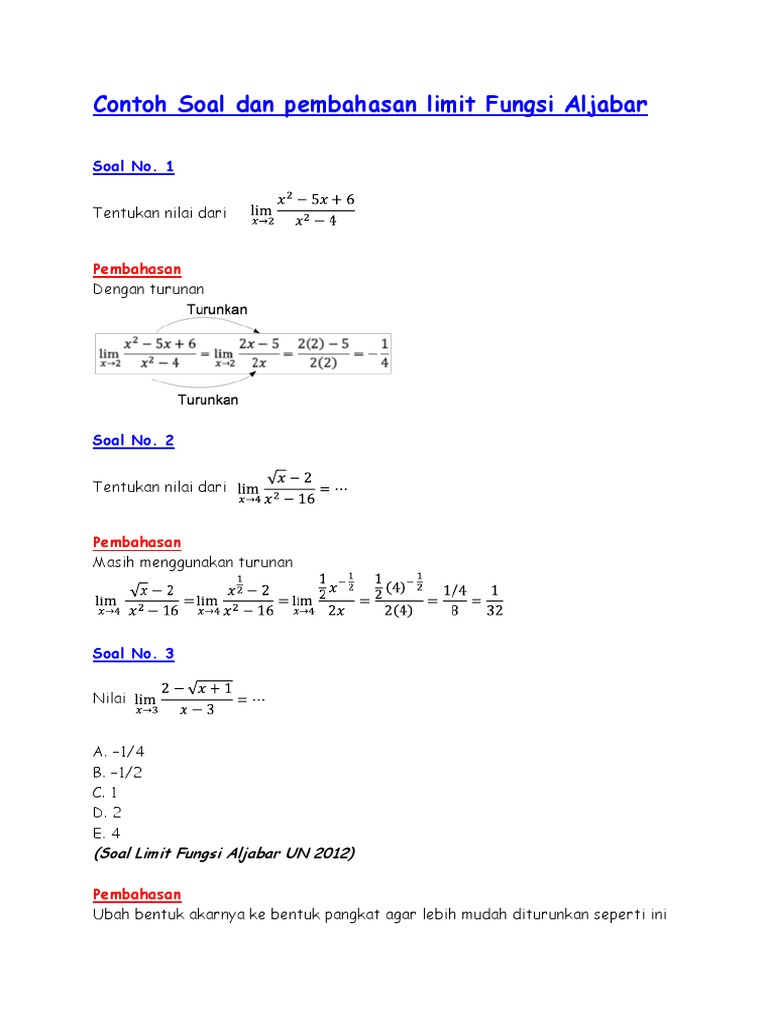 Best 17 Pembahasan Tiga Contoh Soal Limit Fungsi Pdf Video Free