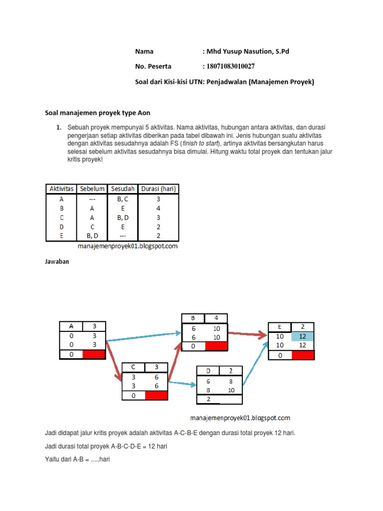 2 4 4 Lama Pekerjaan Penjadwalan Contoh Soal Hot Untuk Utn