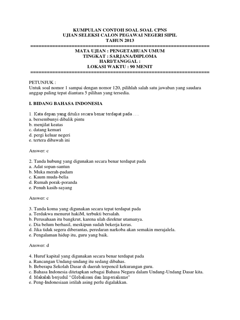 Soal Soal Latihan Kemampuan Berbahasa Indonesia Yang Baik Dan Benar
