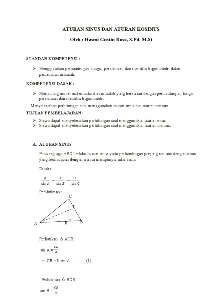 Bahan Ajar Aturan Sinus Dan Cosinus