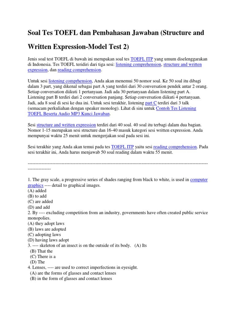 267899575 Soal Tes Toefl Dan Pembahasan Jawaban Structure
