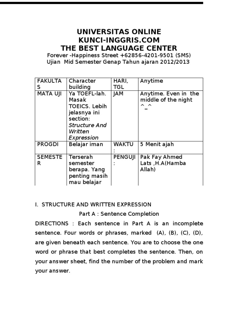 Download Soal Toefl Gratis Structure And Written Expression