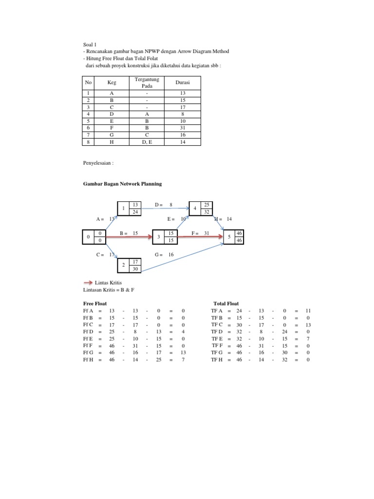 Contoh Soal Network Planning Tenik Sipil Stt Cirebon