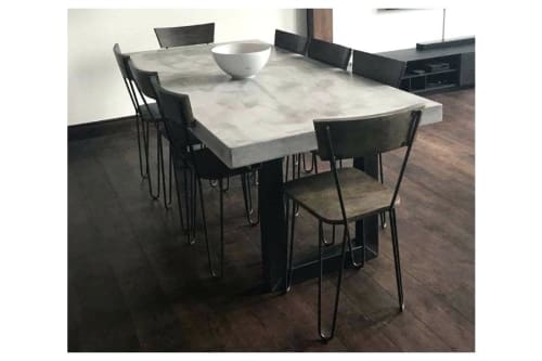 These custom concrete dining & kitchen tables have multiple sizes and metal base selections to help fit your specifications. Save $91.40 (10%) sale $822.59. Poly cement top made of concrete and resin mix with sealer. In the dining room, the substantial surface draws a texturally interesting contrast with delicate glass chandeliers and pendant lights. Dining table, dining room table kitchen table dining table concrete gray 47.2x23.6x29.9 chipboard.
